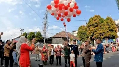 Bukittinggi, Integrirasmedua.com-Pemerintah Kota Bukittinggi gelar pawai alegoris dalam rangka memeriahkan Hari Ulang Tahun Republik Indonesia ke 79 tahun.Pawai dimulai dari Lapangan Kantin, melewati panggung kehormatan di depan kantor PLN dan finish di Jam Gadang. Minggu, 18 Agustus 2024.